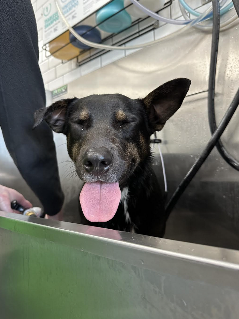A local dog groomer named Andrea, who’d seen Lane’s video, offered to give the pup a nice wash and haircut. After her pampering, Lucky seemed to feel even more relaxed.