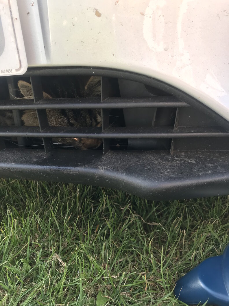 Kane quickly contacted the RSPCA, and inspector Lucy Brennan got the call and quickly came out to help. After assessing the situation, she determined that they were going to need a little extra help for this one and contacted the Automobile Association (AA) to come out and carefully dismantle the car in order to free the furry traveler. They removed the headlights and the bumper, and were finally able to reach the cat, who was named Ford after the model of the car.